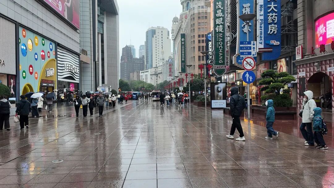 受高空槽影响,昨天半夜起申城出现较为明显的降水天气,白天雨势减弱,有时有小雨为主,下午基本雨止转阴天。全天温差较小,市区徐家汇站白天最高9.3℃,体感偏湿冷。南京路步行街上的人流相比节日里明显减少,但依旧有不少行人打着伞,逛街购物和观光的都有,有人趁着错峰再给家里采购一些商品,街头还是一派热闹的景象。