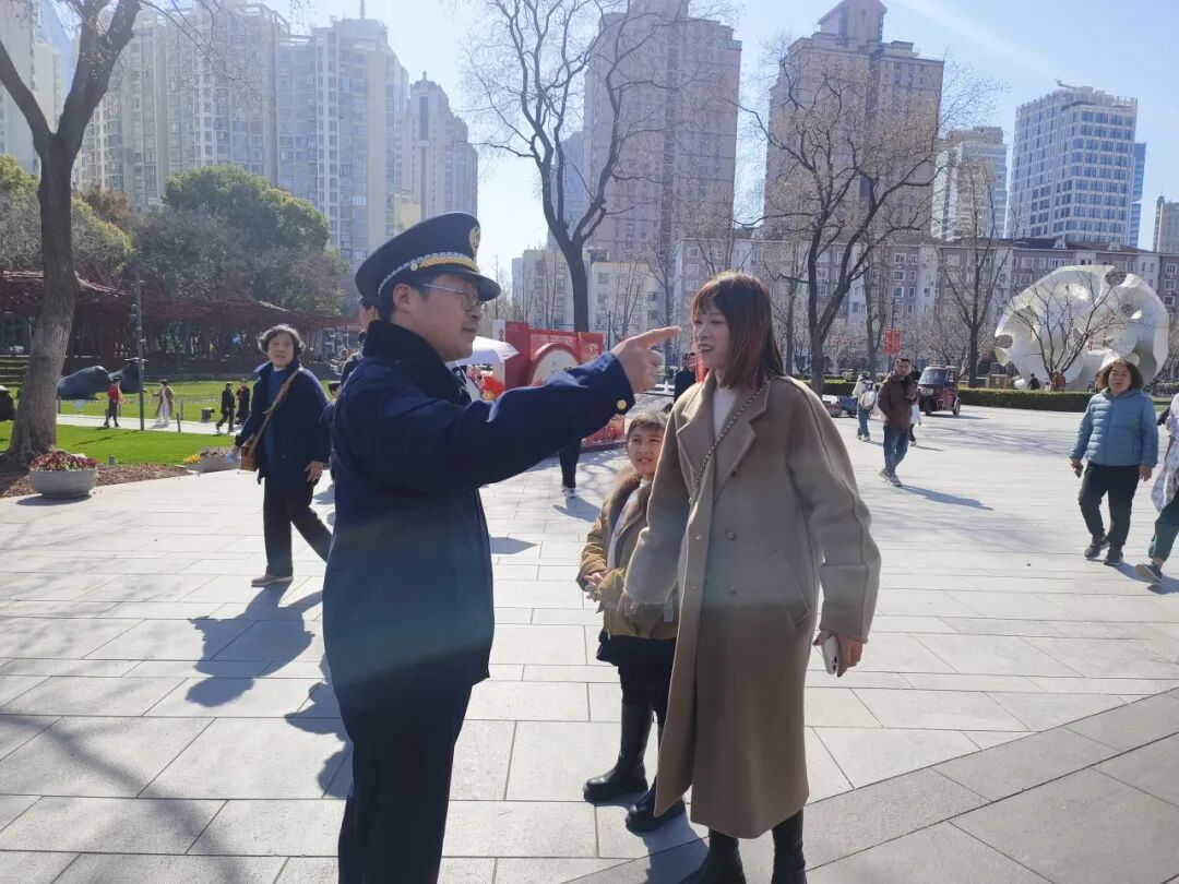 同时,面对游客关于场馆入口、卫生间位置等问题的咨询,或是老人、儿童需要帮助的情况,执法人员耐心解答、主动搀扶、引导排队,并同步清理路面散落垃圾、规整乱停乱放的非机动车,确保参观通道畅通无阻。