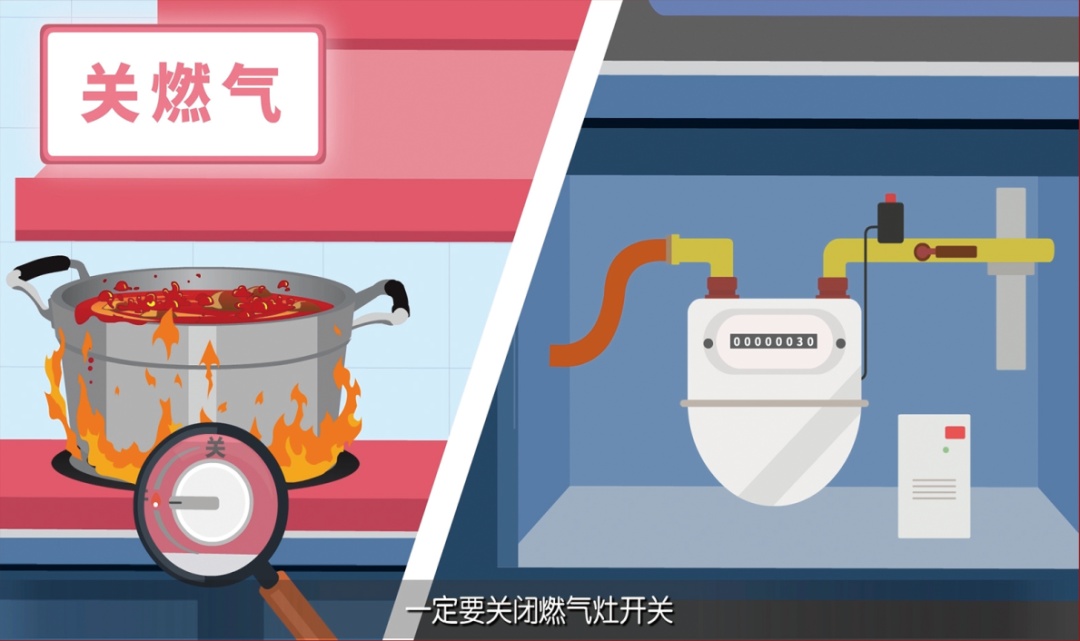 4.用气后及时将气源关闭,不擅自改变燃气管路,定期检查燃气软管是否存在老化、脱落、漏气等家庭火灾隐患。