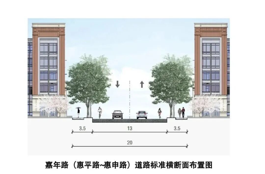 新建嘉年路(惠平路-惠申路),全长439米,新建桥梁一座;新建嘉程路(惠平路-西泾湾),全长181米。两条道路的建成将进一步促进区域开发建设、改善居民出行条件、缓解周边地区的交通压力。