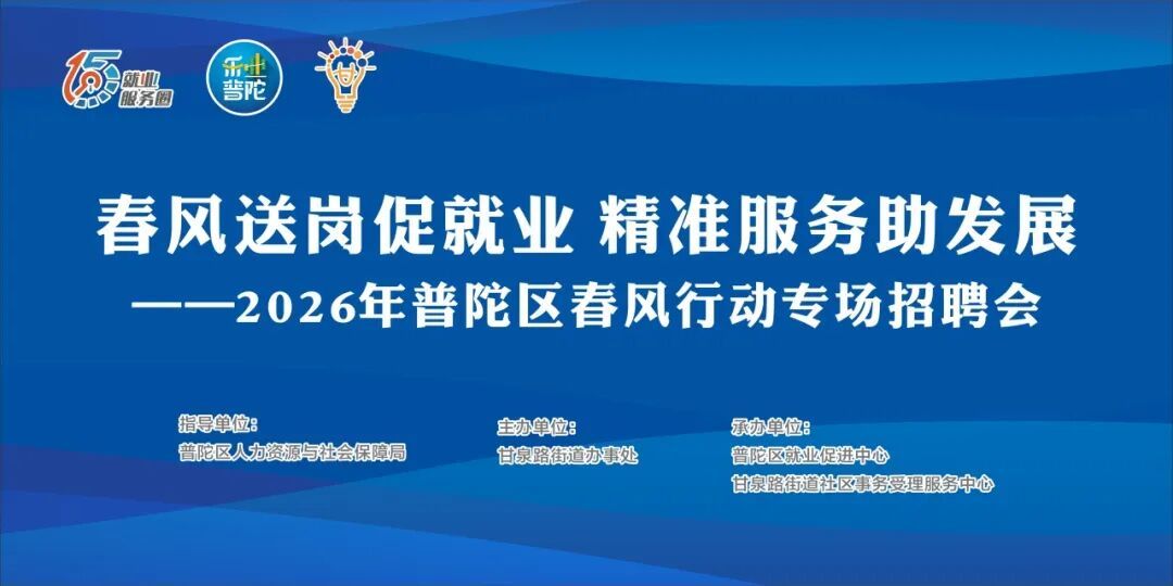 承办单位:普陀区就业促进中心、甘泉路街道社区事务受理服务中心