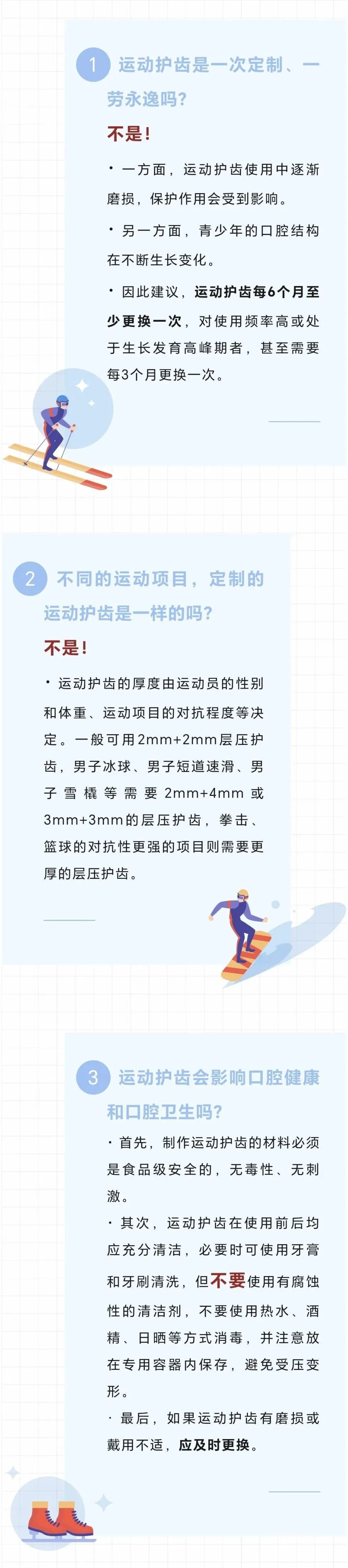 医生提醒,进行剧烈运动,最好有意识地佩戴护齿牙套。它和矫正牙套一样,可以根据每个人的口腔具体结构,进行个性化定制。