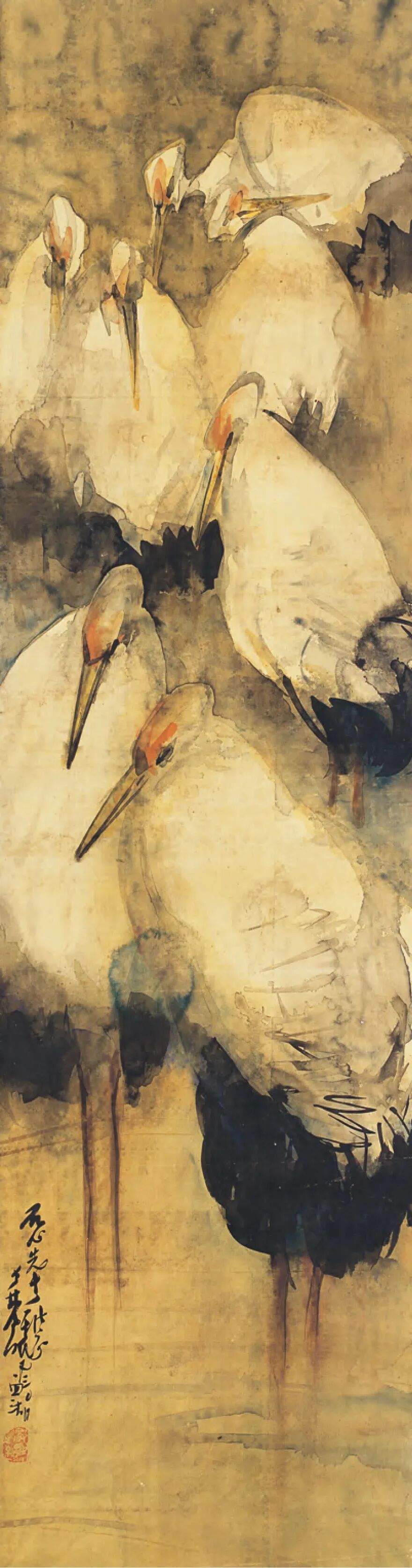 《白鹭图轴》是林风眠于1930年创作的一幅画作。在国内尚存的林风眠画作中,该作品创作年份最早,且采用较为少见的绢本材质,因此显得尤为珍贵。