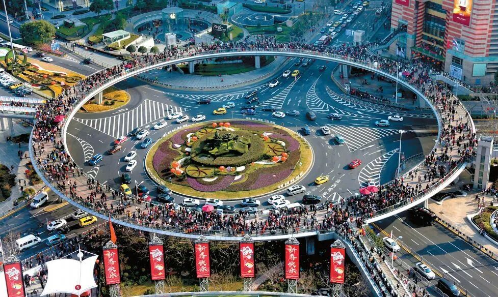 陆家嘴环形天桥连接起了东方明珠、海洋水族馆、正大广场……整体呈圆形状,被游客称为“明珠环”,站在空间廊桥上,可以一览陆家嘴的美景。