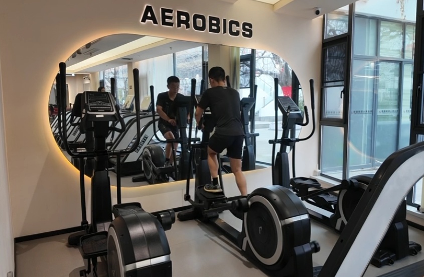 有氧慢跑、举杠铃、踩椭圆机……中午12点半,位于城内江帆路的单行道健身房,运动爱好者们轻装上阵,“热辣”开练,尽情享受运动释放的多巴胺。有氧区域内,跑步作为全民健身的重要项目,凭借普及率高、参与门槛低等优势,成为市民节后减脂的首选。