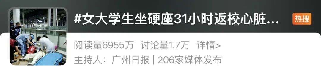 # 女大学生坐硬座31小时返校心脏骤停 #