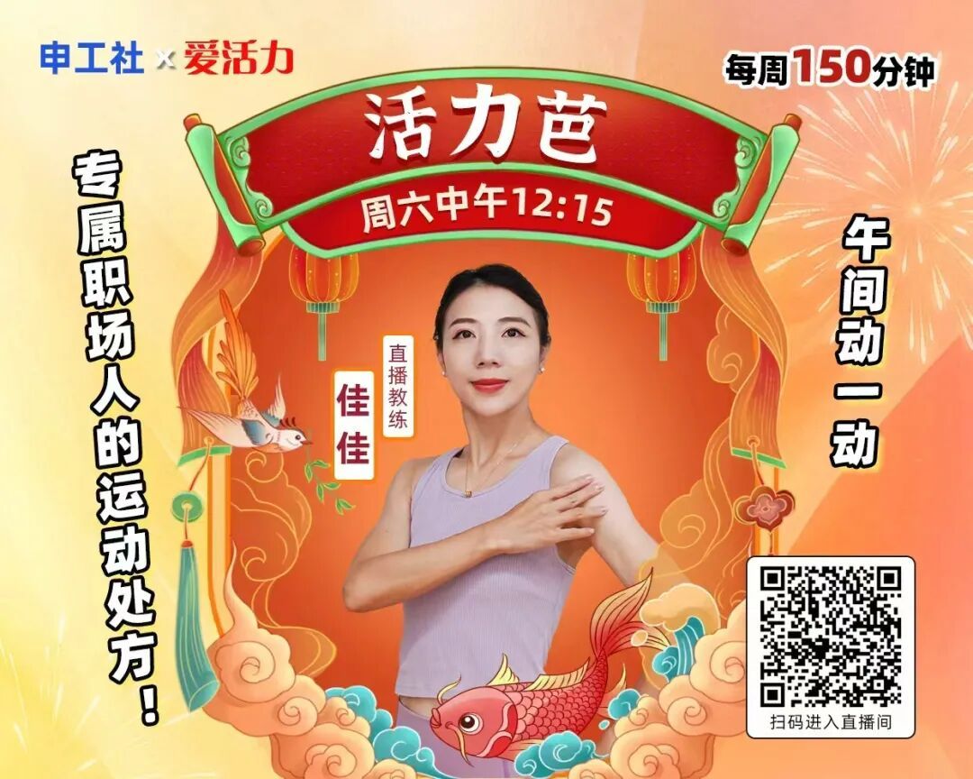 如何科学运动?申工社携手爱活力定制专属职场人的运动处方,带你午间动一动!每个工作日12:15,锁定【申工社视频号直播间】在线跟练!还可以点击【直播回放】,反复练习~
