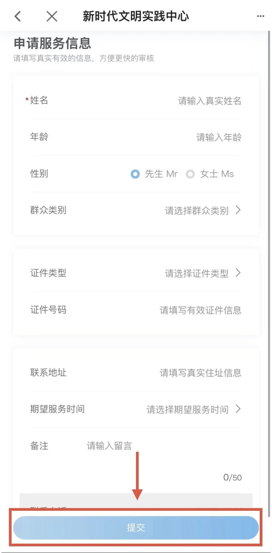 6. 填写“申请服务信息”并点击提交。