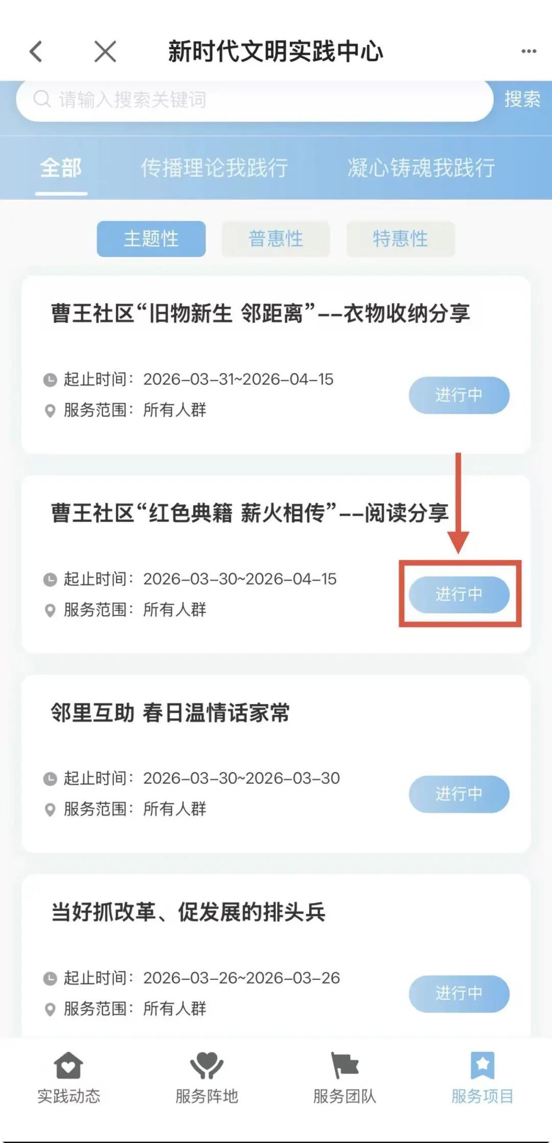 4. 选择正在“进行中”的活动项目。