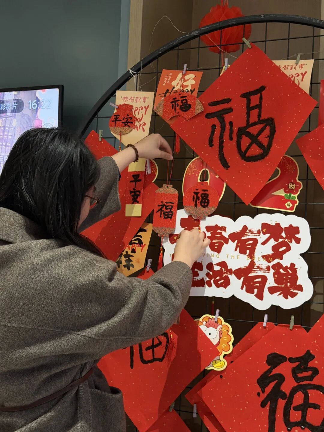 “我自己写的‘福’贴在门上,感觉整个房间都亮了。”一位留沪过年的青年说。