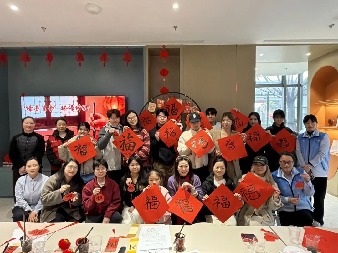棕褐色的墨痕带着烘焙香,一笔一画落在红纸上,环保与年味交织成新的传统。活动结束后,福字与春联被贴满了社区走廊、门框,也有人小心翼翼地带回家,贴在了房门上。