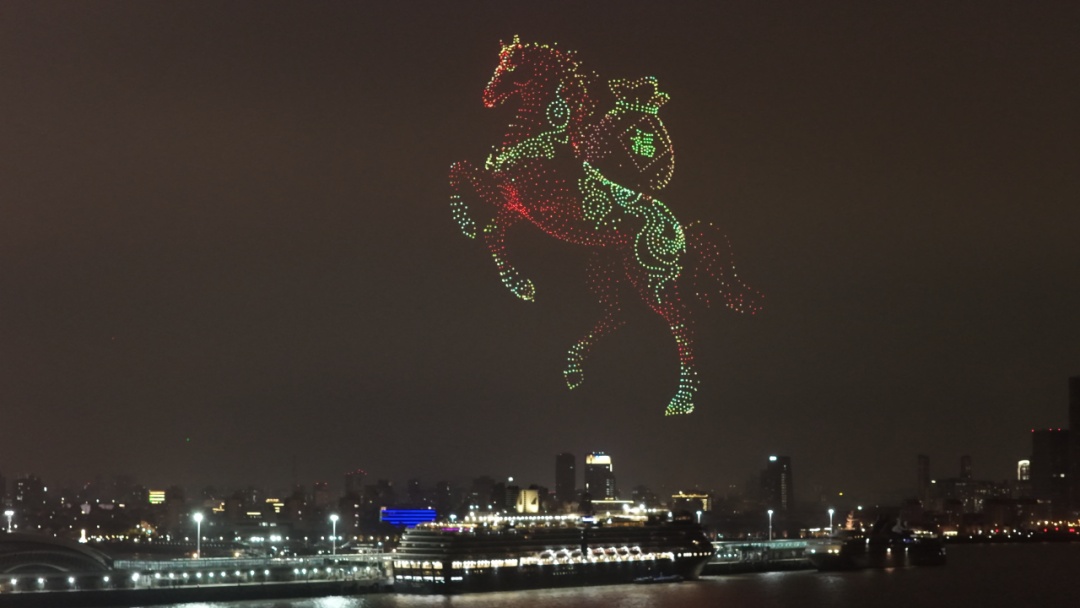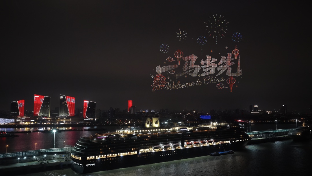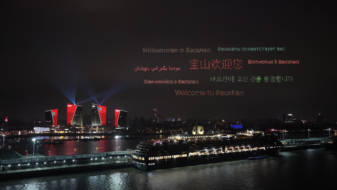 正月初九(2月25日)晚,宝山滨江的夜空被一场超炫酷的无人机表演点亮啦!一幅幅新春祝福的图案逐一亮相,为现场市民和游客送上了一份来自天际的新春惊喜,也向来自世界各地的邮轮游客发出了“来宝山,赴一场江海之约”的盛情邀约。