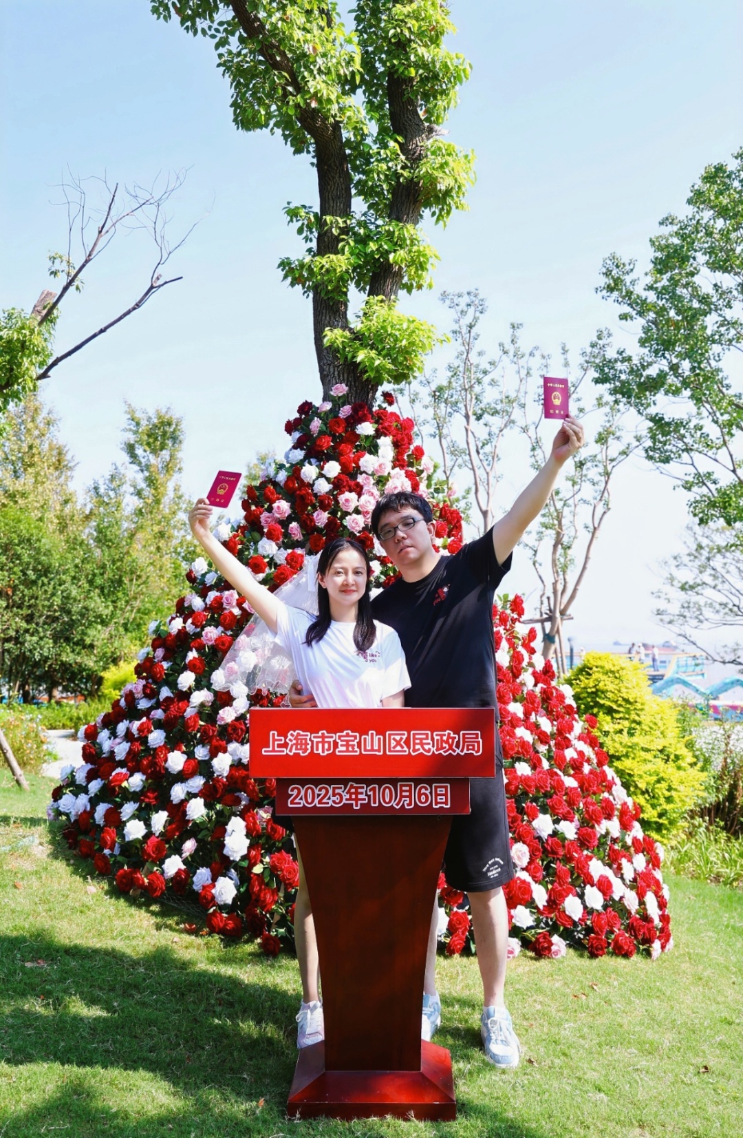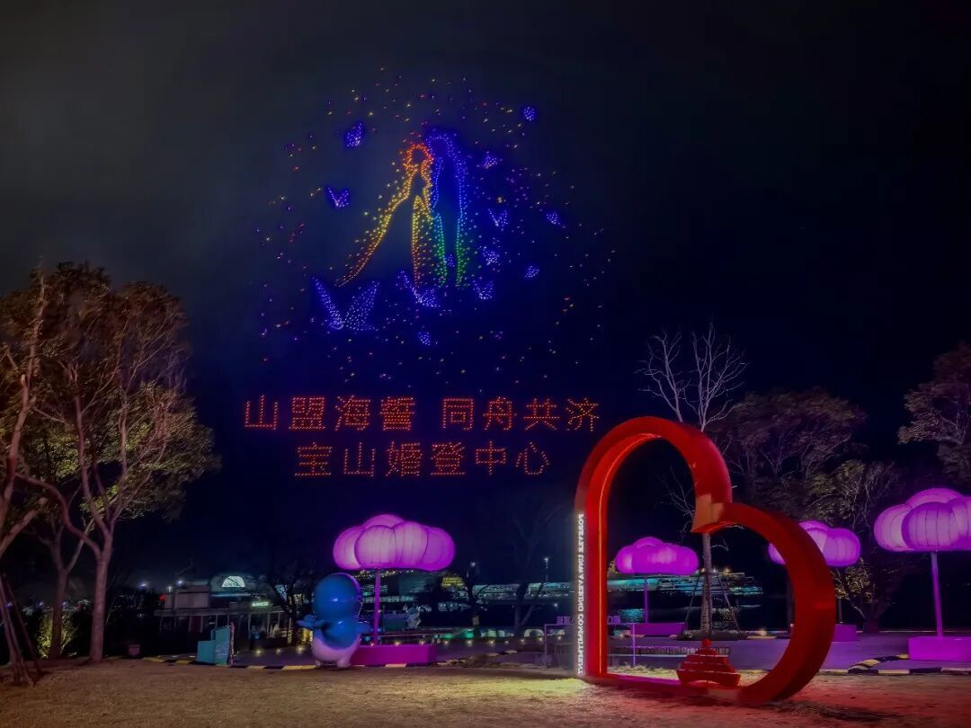 而最让人心动的是:婚姻登记的浪漫画面,竟然“飞”上了天! 宝山区婚姻登记管理所把江边那个超火的“吴淞口路520号”搬到了夜空里,民生服务邂逅城市光影,甜度直接拉满~