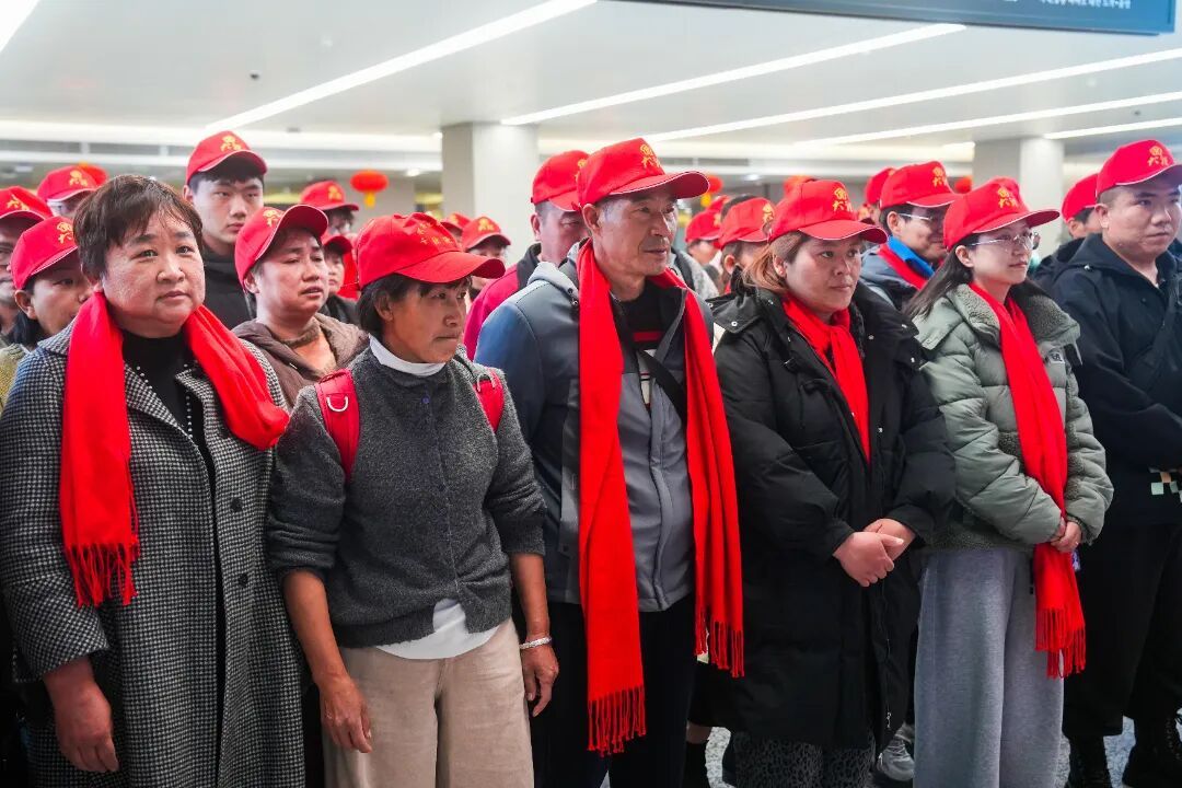 2月26日下午3点半,上海虹桥机场和浦东国际机场的接机大厅里,一片红色的“海洋”格外引人注目。148名戴着红帽子、拖着行李箱的务工人员从国内到达出口鱼贯而出,他们是从云南省大理白族自治州五县乘坐“点对点”包机抵沪的返岗就业人员。
