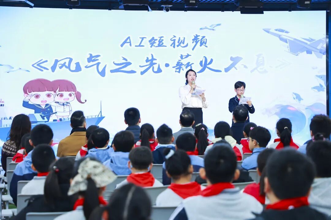 铃声刚响,课堂里播放起一段由AI生成的短片《风气之先・薪火不息》。画面流转,带领师生穿越回1878年的正蒙书院——那是梅溪小学的前身,中国近代新式教育的起点之一。创始人张焕纶“培育经世之才”的理想,在影像中与今天的课堂悄然交汇。借助现代科技,让学校深厚的历史“活”了起来。