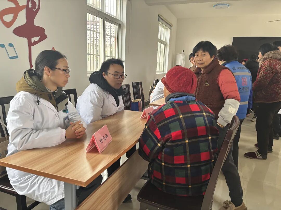 活动现场,来自崇明区中西医结合医院的内科、外科、中医科等专科医师一字排开,为村民提供免费血压测量、一对一健康咨询、慢病用药指导等服务。