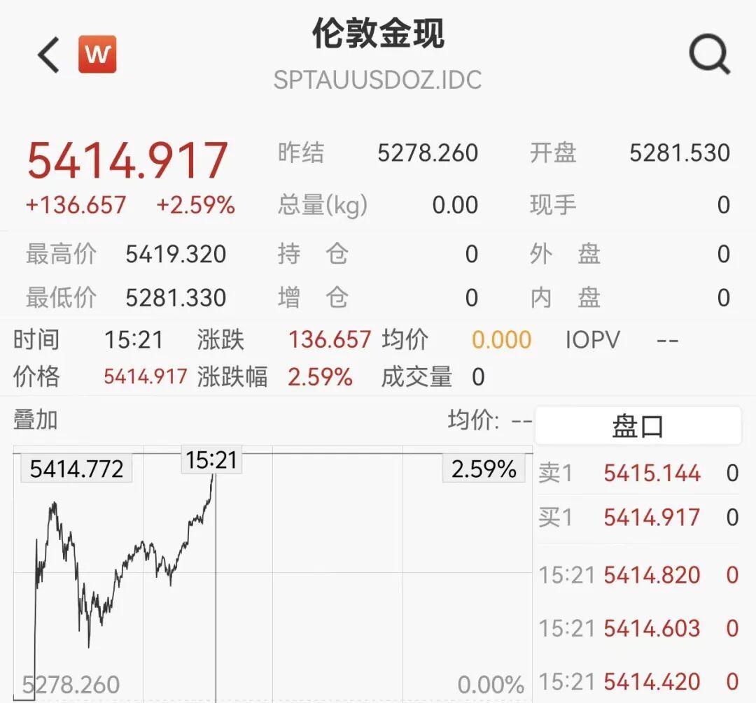 报5414.9美元/盎司