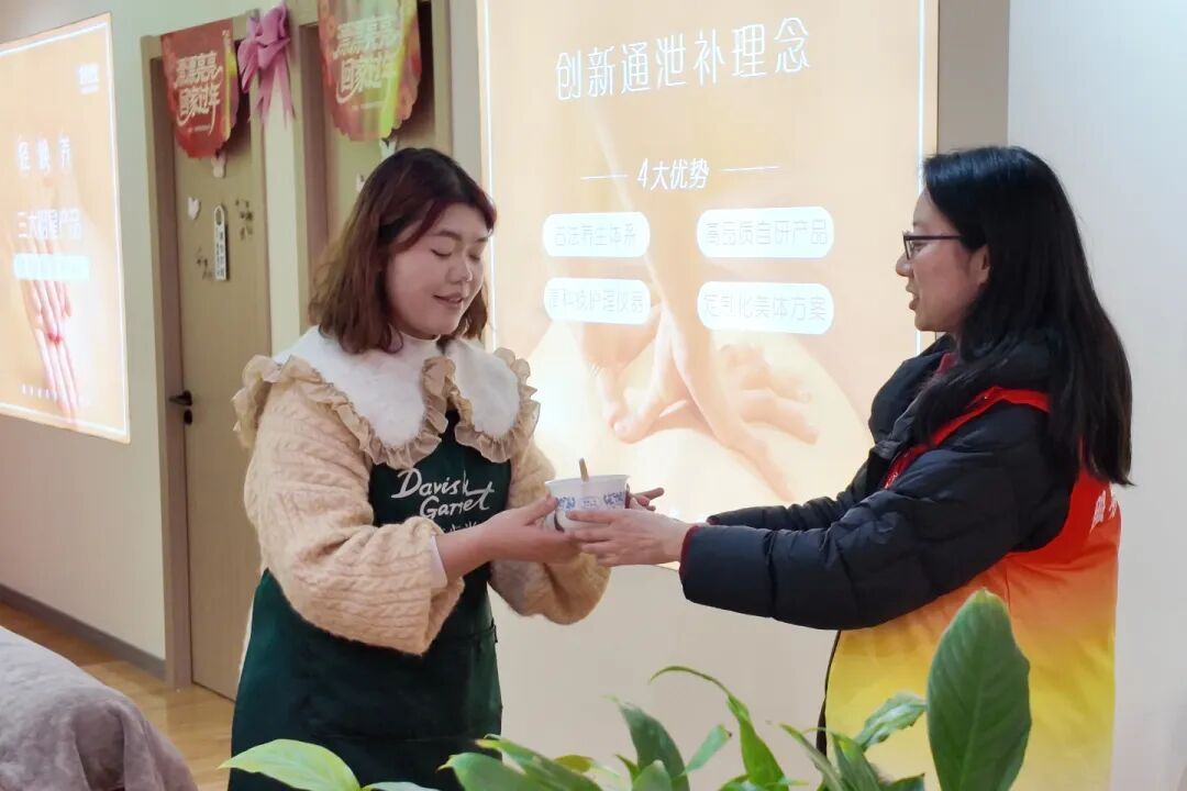 “平时都是我们服务别人,今天有人专门来给我们送汤圆,心里特别暖。”李女士接过汤圆时笑着说。