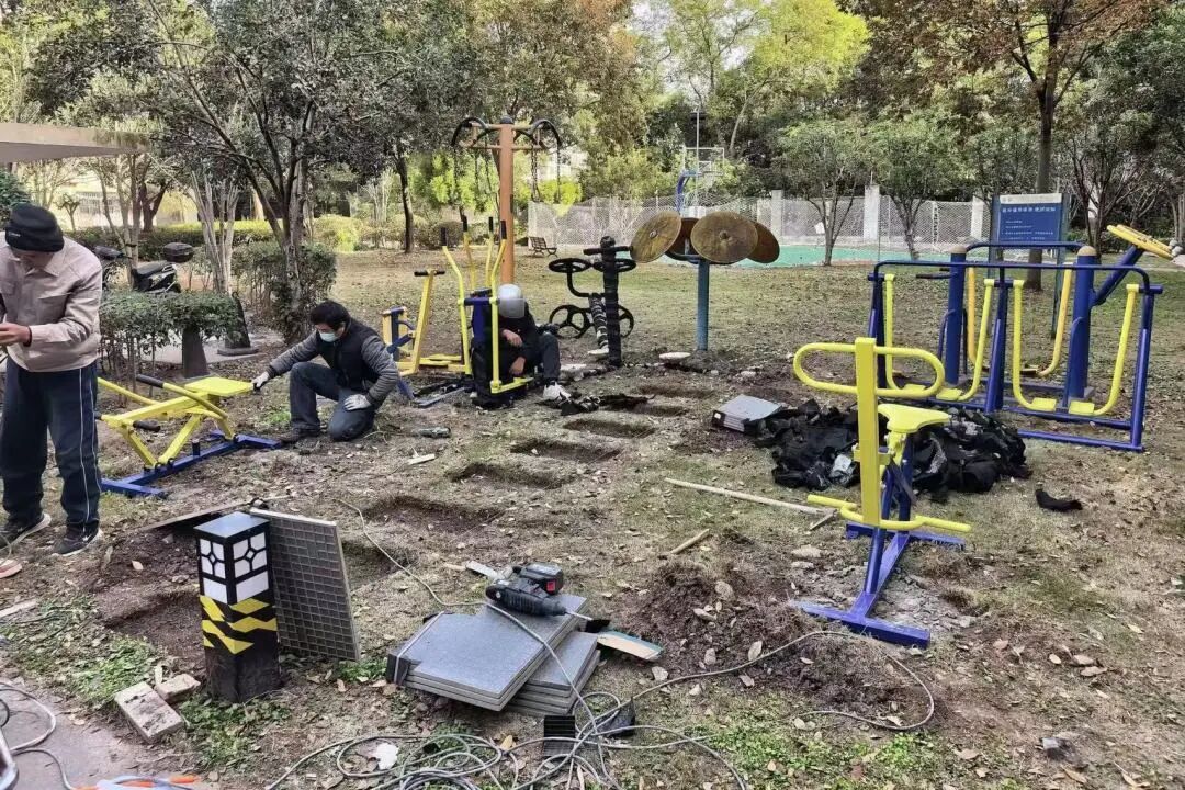 由于雨打日晒,小区大部分老年健身设施锈蚀或破损,渐渐荒废、无人问津。为促使老年居民多迈出家门、强身健体,此次改造全面更新了老旧设施,另增加了一台漫步机和健腰器,材质环保安全、设计贴合老人需求。改造后,一大早就有居民在太极揉推器上锻炼,一位老人坦言:“新设施用着放心,不用跑太远,家门口就可以健身了。”