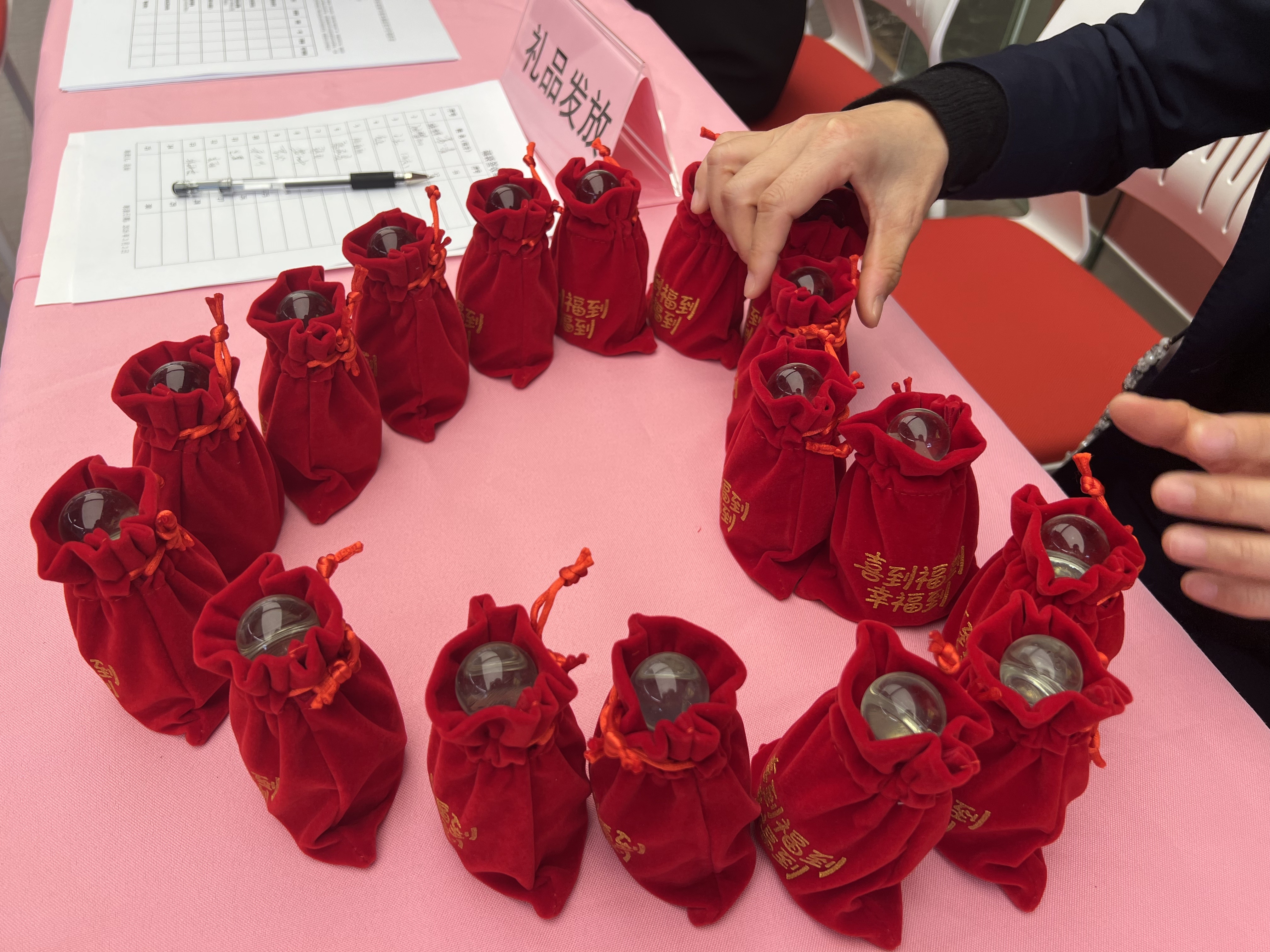 走进登记大厅,浓浓的节日气息扑面而来。大厅一侧,一棵挂满谜面的“柿子树”吸引了新人们驻足。“缘谜巧解”趣味灯谜竞猜将传统文化、上海风情与民法典知识巧妙结合,新人们在思考与欢笑中感受节日乐趣,学习文明家风。猜对灯谜的新人可以获赠一只红色福袋,内装象征生活甜蜜的小罐蜂蜜,外包装上印有“喜到福到幸福到”的温馨祝福,寓意着新生活的美好开端。
