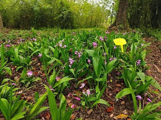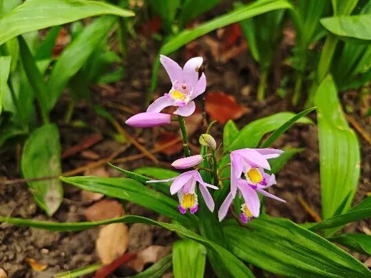 外观习性:多年生草本,株高20-60cm。假鳞茎扁球形。叶狭长圆形。花紫红色或粉红色,唇瓣边缘有波状齿,花期4-5月。