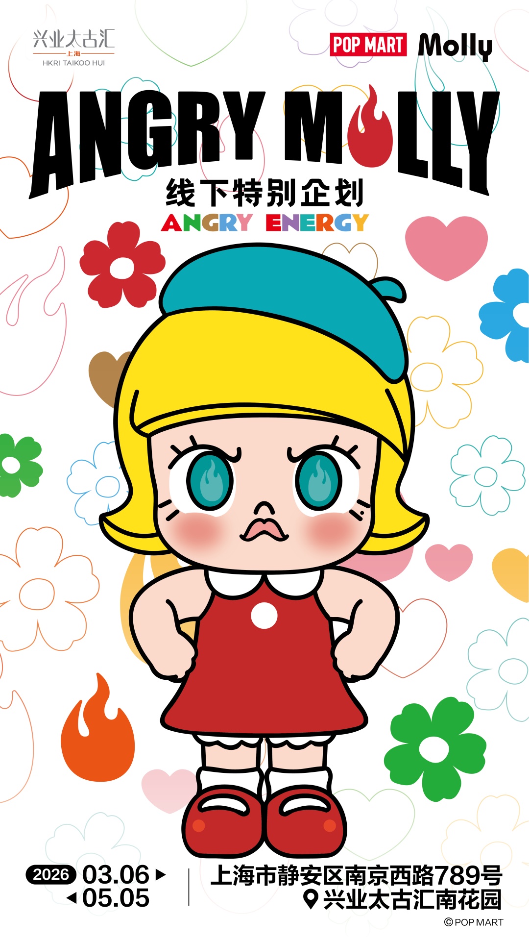 3月6日至5月5日,Angry Molly线下特别企划将登陆兴业太古汇南花园,为庆祝POP MART旗下IP——MOLLY诞生20周年,Angry Molly从情感表达出发,首次以大型玻璃钢雕塑矩阵展出,打造关于色彩、能量与自我表达的沉浸式公共艺术场景。