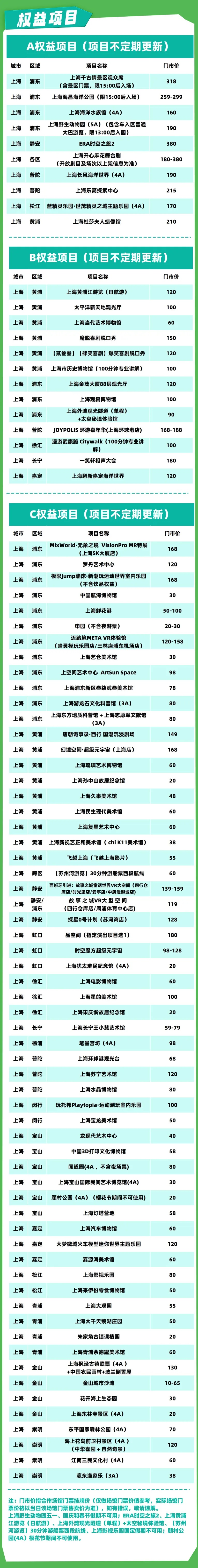 上海人文自然景点年票