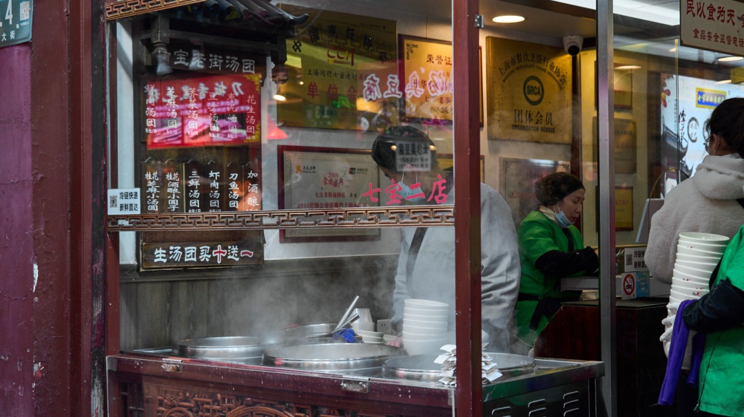 “只是我第一次来吃,本来以为汤圆就是甜的,没想到鲜肉这么好吃。”大学生小刘说,“刚刚也已经安利给室友们了!下次到七宝肯定还要来吃的。”店里店外,老食客和新面孔,上海话和普通话,老人的回忆和年轻人的好奇,都在这一碗热气腾腾的汤圆里相遇。