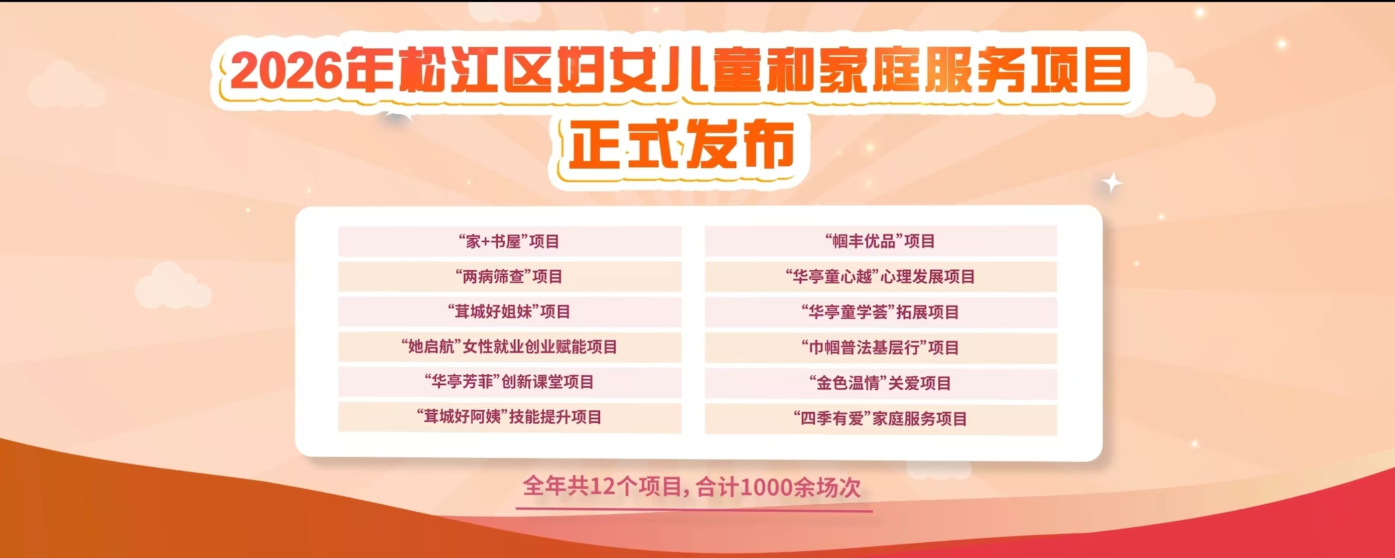 3月3日下午,“巾帼心向党·实干建新功”——松江区各界妇女纪念“三八”国际妇女节116周年大会举行。会上发布了2026年松江区妇女儿童和家庭服务项目,计划全年推出12个项目,开展1000余场活动,以项目化、清单化方式回应广大妇女儿童和家庭的实际需求。
