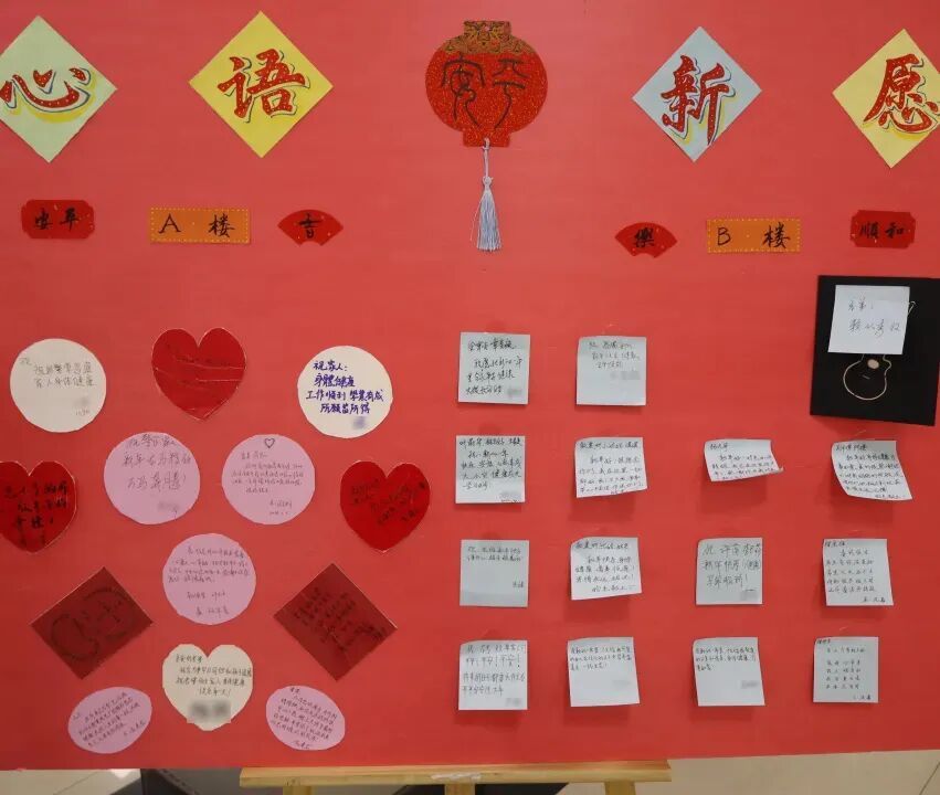 两墙相对,如心相望。春风拂过连廊,便签轻轻作响。