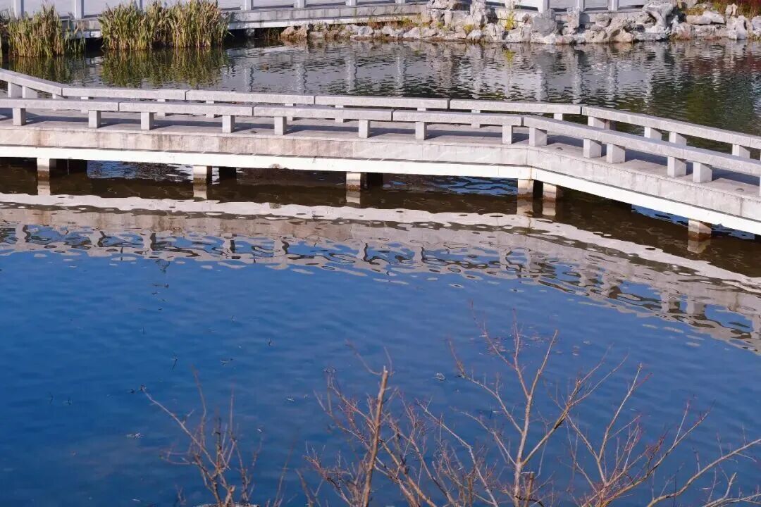 斑驳的树影映照在晨兴湖上,微风拂过,波光粼粼,平静的水面碎银一样裂开,绚丽不已。在林间漫步,仿佛身处天然氧吧。于水边的长椅上小憩,感受自然的宁静。