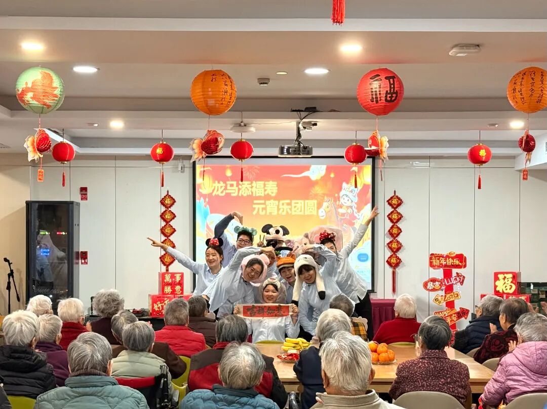 同样的团圆氛围,在二分部化作一场热闹的联欢会。护理员、后勤人员纷纷“跨界”登台,舞蹈、朗诵、快板轮番上阵,平日里细致周到的“守护者”成了舞台上的主角。压轴时分,张爷爷献唱沪剧选段,韵味悠长的唱腔赢得满堂喝彩。镜头定格在合影的那一刻,节日的意义,也在这份陪伴中有了最朴素的注脚。