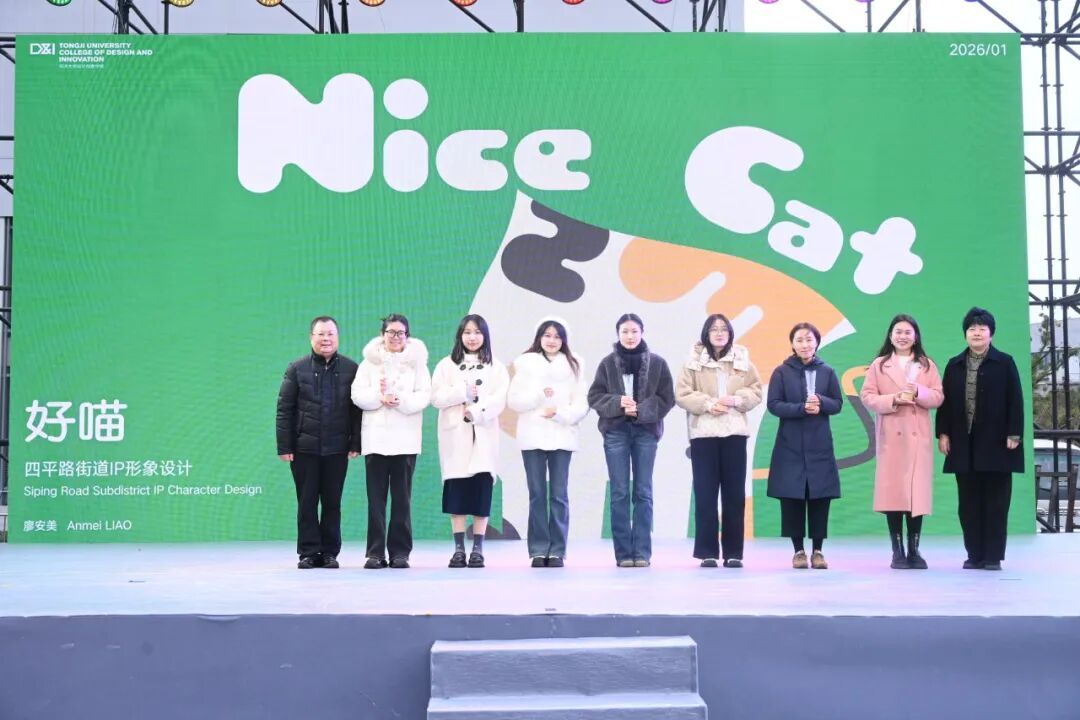 为凝聚社区文化共识,四平路街道与同济大学设计创意学院联合发起的社区IP形象设计征集活动也揭晓最终结果。经过社区各界踊跃投票,由同济学子廖安美设计的“好喵”脱颖而出,成为四平社区的“专属代言人”。活动现场还为参与设计的7位同学颁发“美好社区IP设计新锐奖”,展现青年学子参与基层文化建设的创新活力。