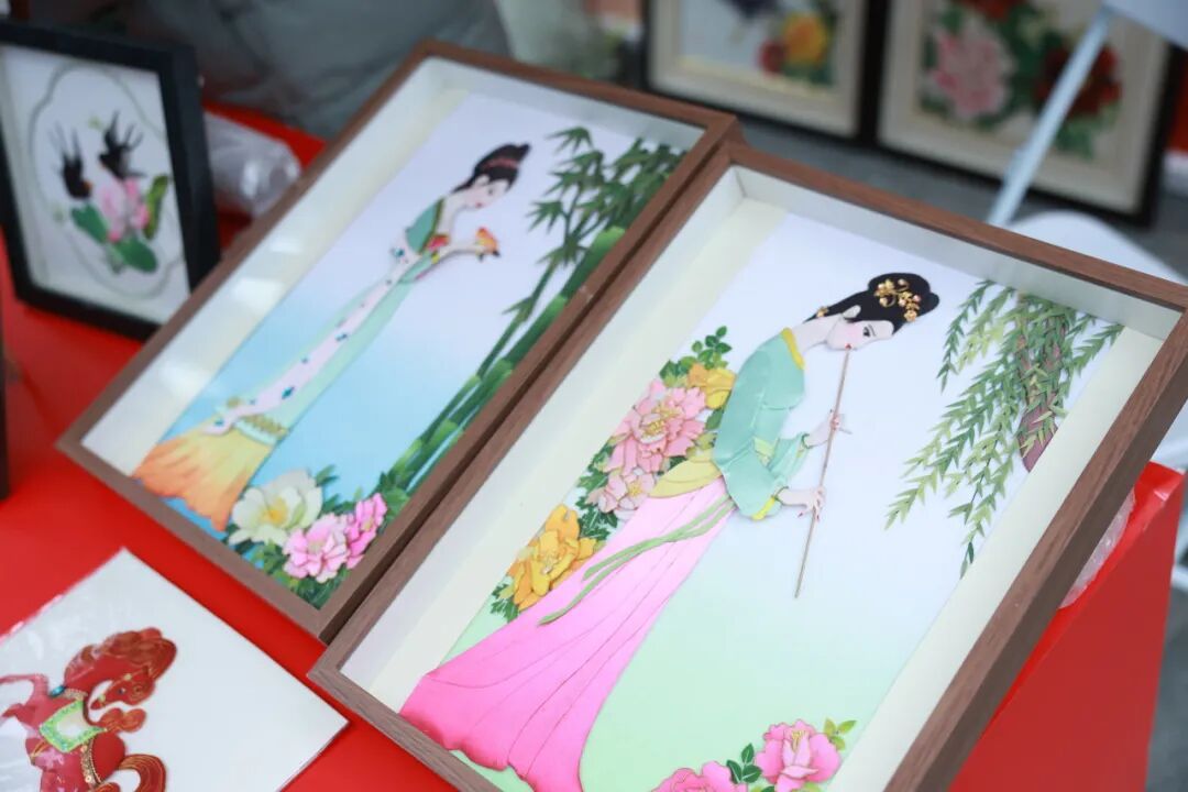 不远处,杨浦社区布艺画的展台上,一幅幅作品题材丰富、做工细腻。这项2009年入选区级非遗的技艺,在传统堆绣基础上不断改良,如今已成为社区居民生活中触手可及的美学表达。