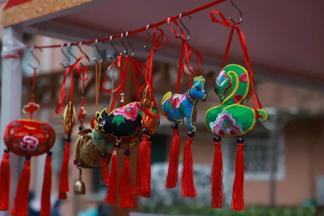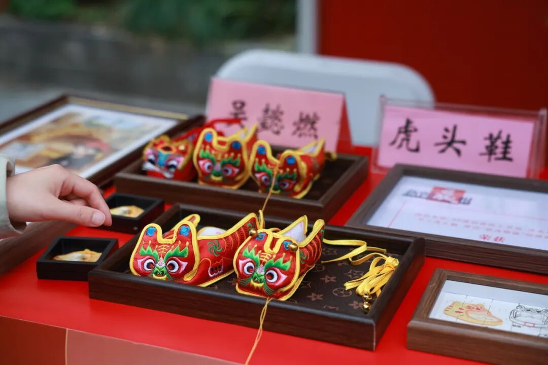 最让人挪不开眼的,是那一双双虎头鞋。2020年入选杨浦区非遗名录的虎头鞋制作技艺,让传统手工艺品重回节日视野。虎头模样憨态可掬,一针一线里藏着长辈对孩子的祝福。