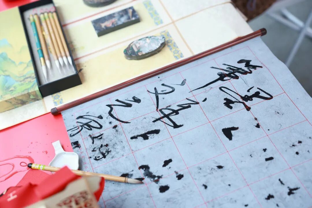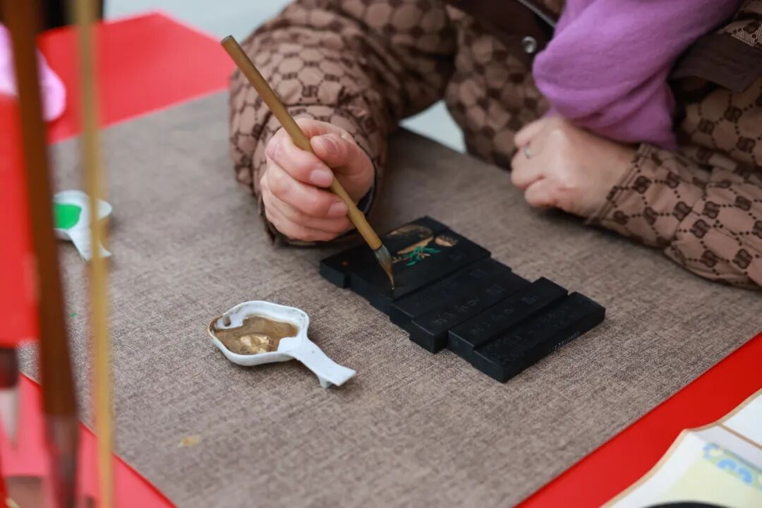 移步向前,笔墨宫坊的展台透着安静的书卷气。这个国家级非遗生产性保护示范基地、国家4A旅游景区,将制笔制墨的百年匠心带到市集现场。一方砚、一支笔,不疾不徐的演示间,仿佛能听见时光流淌的声音。