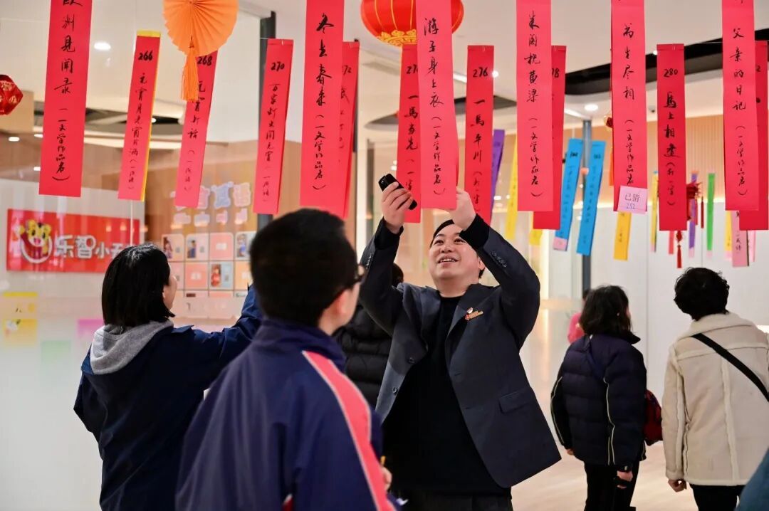 现场600条灯谜均由社区书法家手写而成,马年吉祥话语、传统民俗知识、廉洁清风理念融于谜面,居民们三五成群琢磨探讨,欢声笑语不断;剪纸区与花灯制作区里,家长与孩子携手创作,福字、骏马、醒狮灯等作品跃然眼前,非遗韵味在亲子互动中静静传承。机器狗酷玩秀的亮相更让传统佳节潮味十足,智能互动表演引来孩子们阵阵欢呼,全新亮相的儿童友好空间也成为亲子休闲的好去处。
