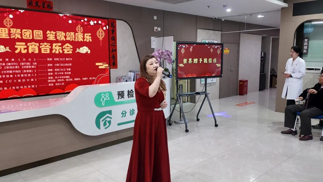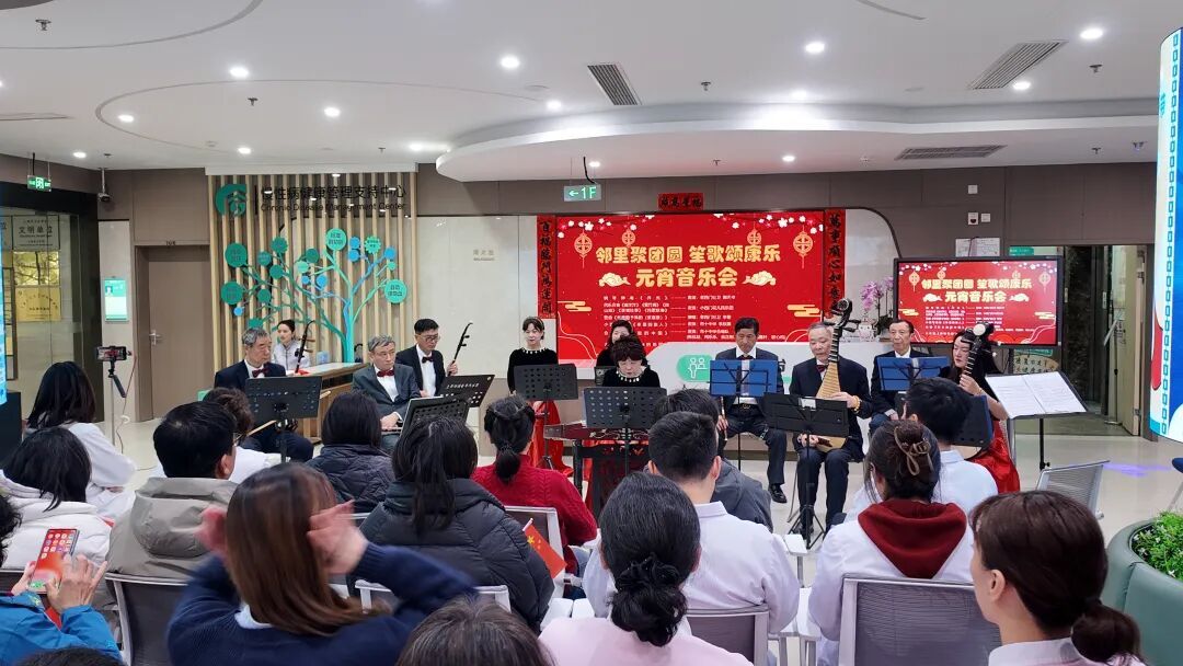 元宵佳节至,花好月圆时。今天中午,老西门街道社区卫生服务中心内一片欢腾,“邻里聚团圆 笙歌颂康乐”元宵音乐会在此温馨上演。此次音乐会由多方携手打造,为社区居民和卫生服务中心的工作人员带来了一场充满节日氛围与文化魅力的音乐盛宴。