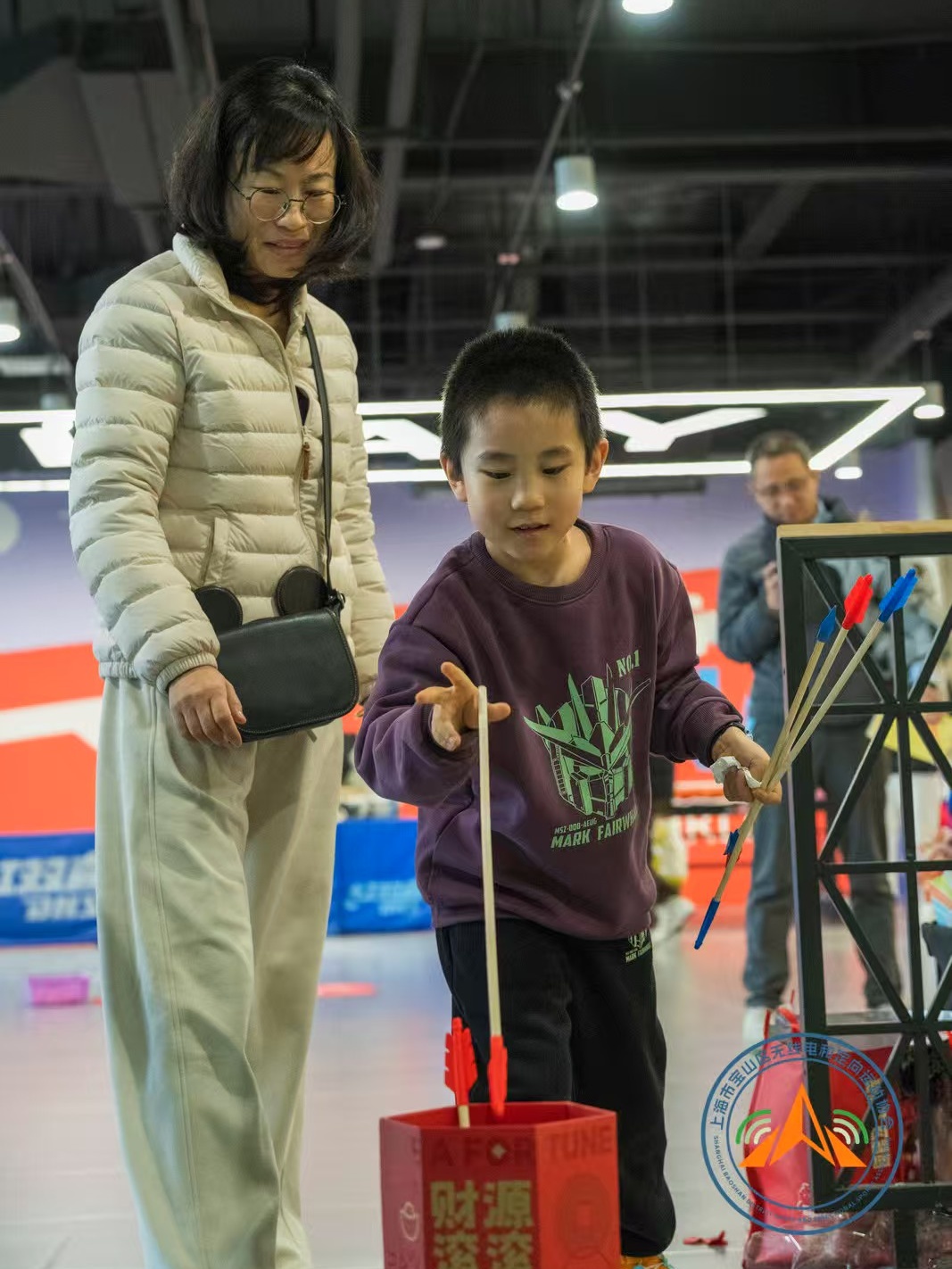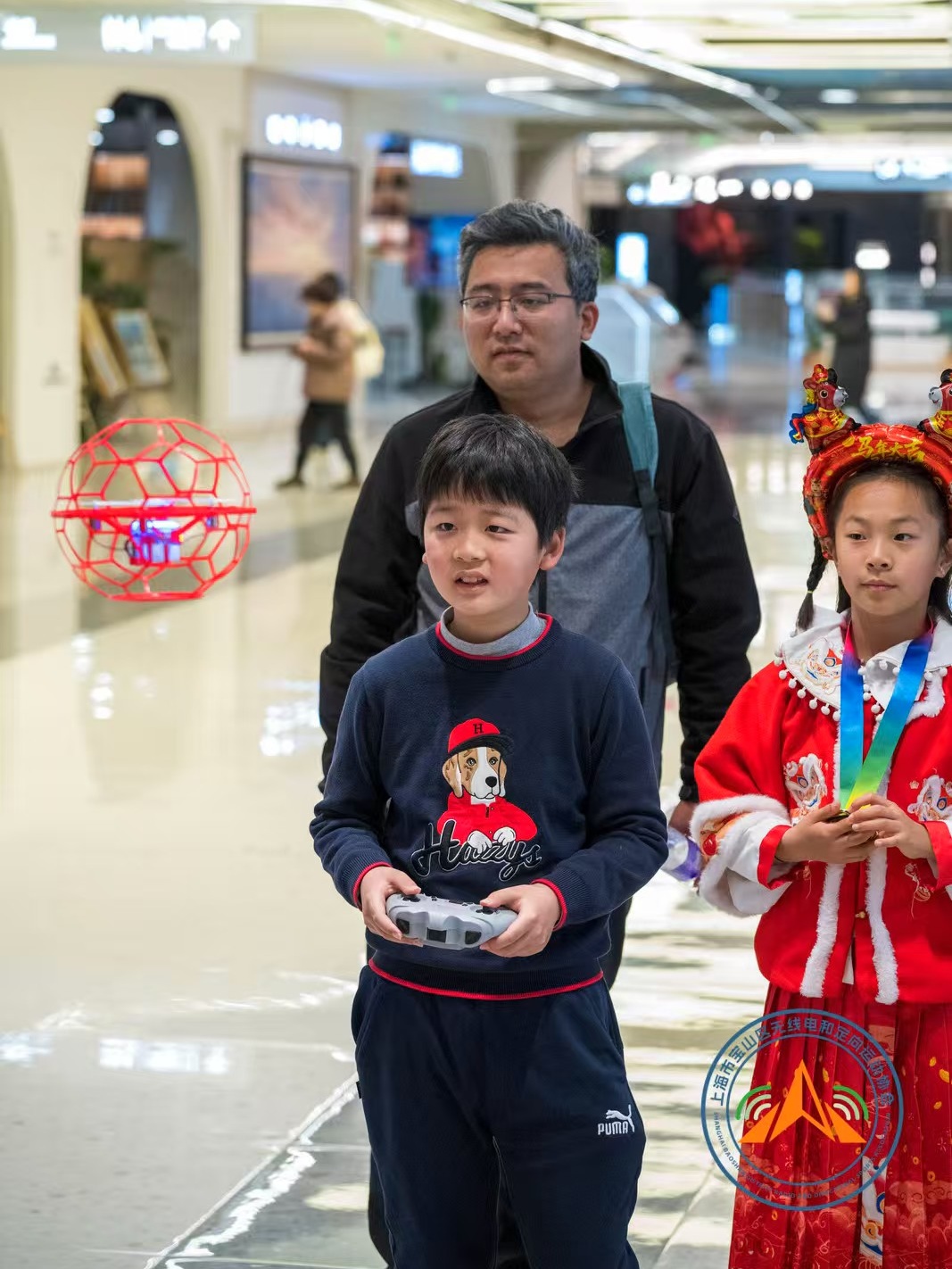 锣鼓喧天闹元宵,亲子携手共成长。近日,上海城市业余联赛“战FUN”宝山亲子元宵定向赛在宝山上海·海上世界欢乐开赛。本次赛事由宝山区体育局、宝山区教育局主办,宝山区无线电和定向运动协会承办,宝山区中小学无线电科创联合体和上海·海上世界协办。活动以“印记孩子的成长”为核心主题,将元宵传统民俗与定向运动深度融合。 赛事设置“元宵灯谜猜猜看”“亲子巧手做花灯”“传统投壶大挑战”“无人机足球射门”“汤圆巧渡”等特色任务点,让家长和孩子在完成定向打卡的同时,沉浸式体验传统文化魅力。上午9点半,随着赛事启动,每组亲子家庭手持任务卡和探宝信息表,兴致勃勃地穿梭于上海·海上世界四楼文体中心,有的家庭并肩研究路线、探索任务点;有的孩子拉着家长的手一路小跑,兴奋地冲向目标;还有的家庭在灯谜任务前驻足思考,共同破解趣味谜题。每完成一个任务,都伴随着孩子的欢呼和家长的鼓励,成长的印记在一次次协作中悄然定格。