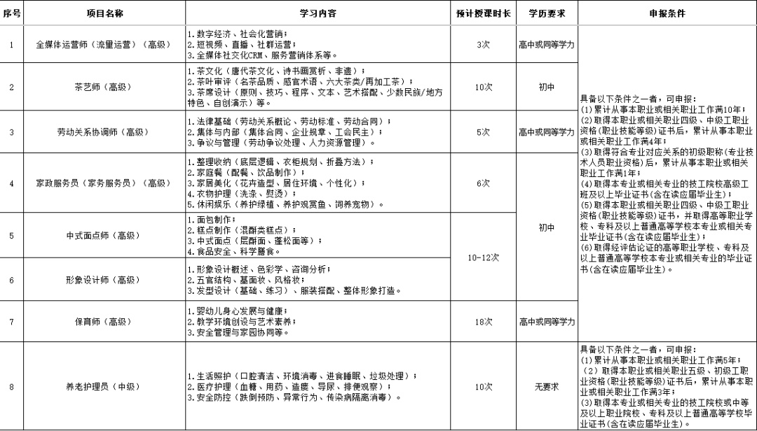 江桥镇2026年全媒体运营师(流量运营)高级、茶艺师高级、劳动关系协调师高级、家政服务员(家务服务员)高级、中式面点师高级、形象设计师高级、保育师高级、养老护理员中级培训班即将开班。