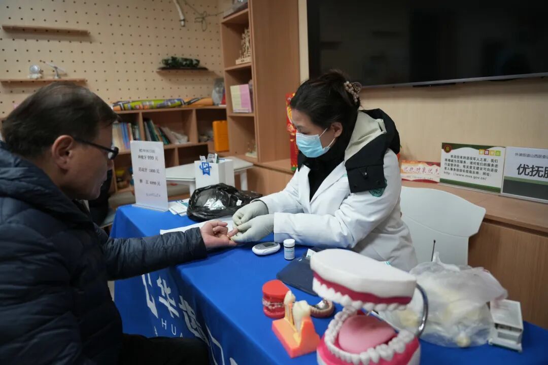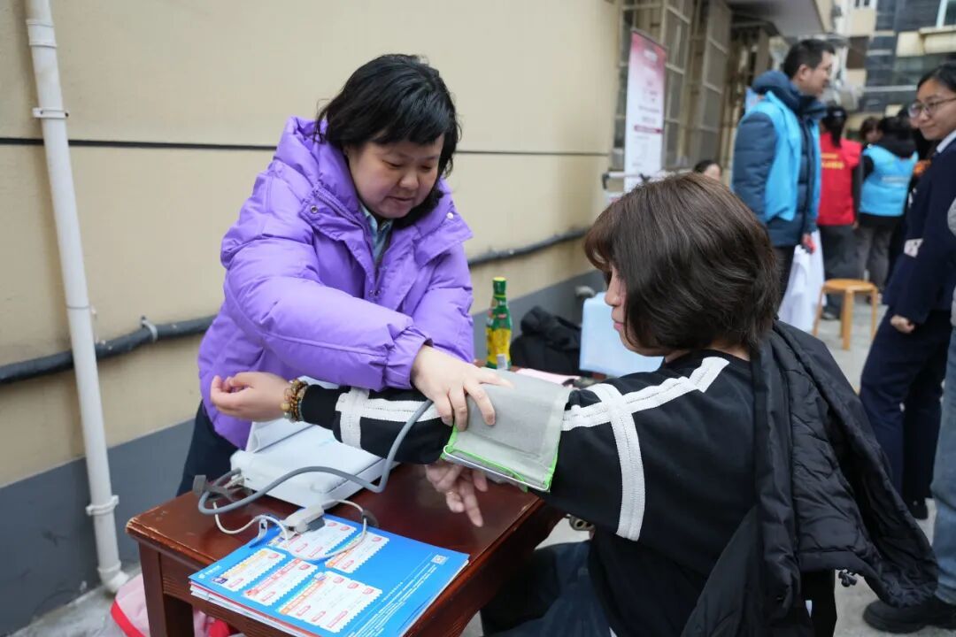 量血压、测血糖,志愿者耐心为老年居民测量身体指标,细致询问饮食、用药情况,讲解常见慢性病预防、健康养生等知识,提醒老人们关注自身健康,帮助养成良好生活习惯。