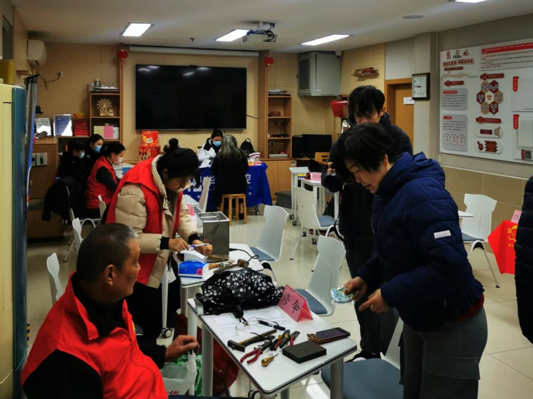 修雨伞、修钟表,手艺娴熟的志愿者们凝神专注,认真检查每一件物品的故障,换零件、调试,动作娴熟利落,为居民修复损坏的物品,解决生活中的小烦恼。