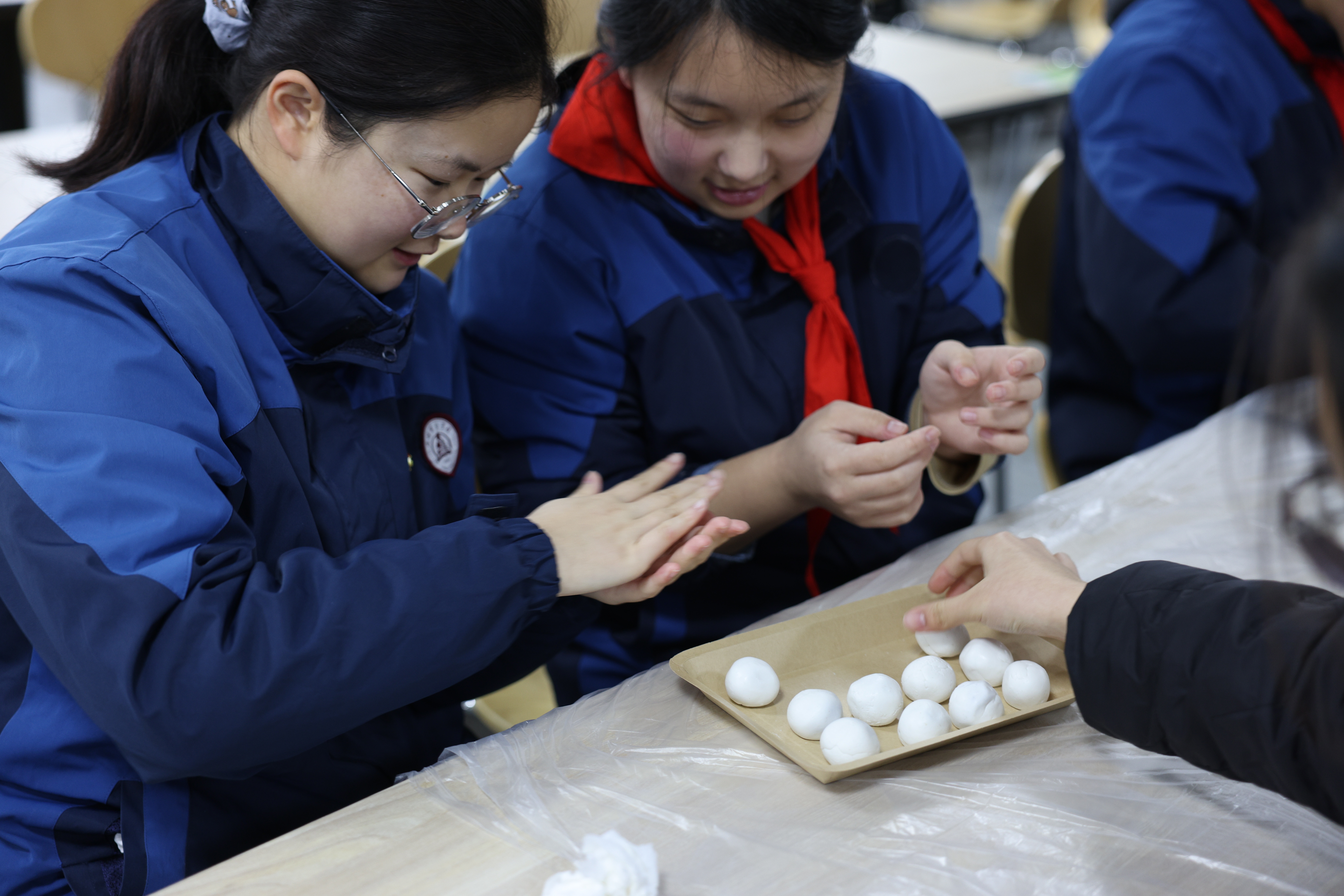 马年“拓”福启新程,团圆汤圆暖人心。元宵节当天,九峰实验学校的食堂内,一场以“庆元宵,品食光——‘食育’里的团圆与成长”为主题的特色活动热闹开场。揉面、包馅、搓圆……孩子们包起汤圆来有模有样,还自豪地介绍:“我们包的汤圆主打低糖健康,好吃又放心!”除了亲手体验汤圆制作,七(7)班张雨桐、六(6)班黄宥萱还带来了《元宵节饮食传统与现代营养观》微讲座。她们既分享了元宵节饮食的传统文化内涵,又从营养学角度解析了汤圆等节令食品的健康密码,向同学们倡导“适度、多样、均衡”的节日饮食新观念。现场开展的趣味知识问答环节,更是点燃了大家的参与热情,将整场活动推向高潮。