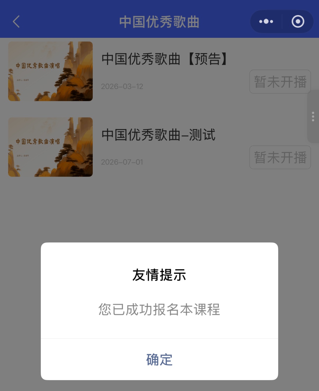 跳出报名成功提示,完成报名,可直接观看报名课程。