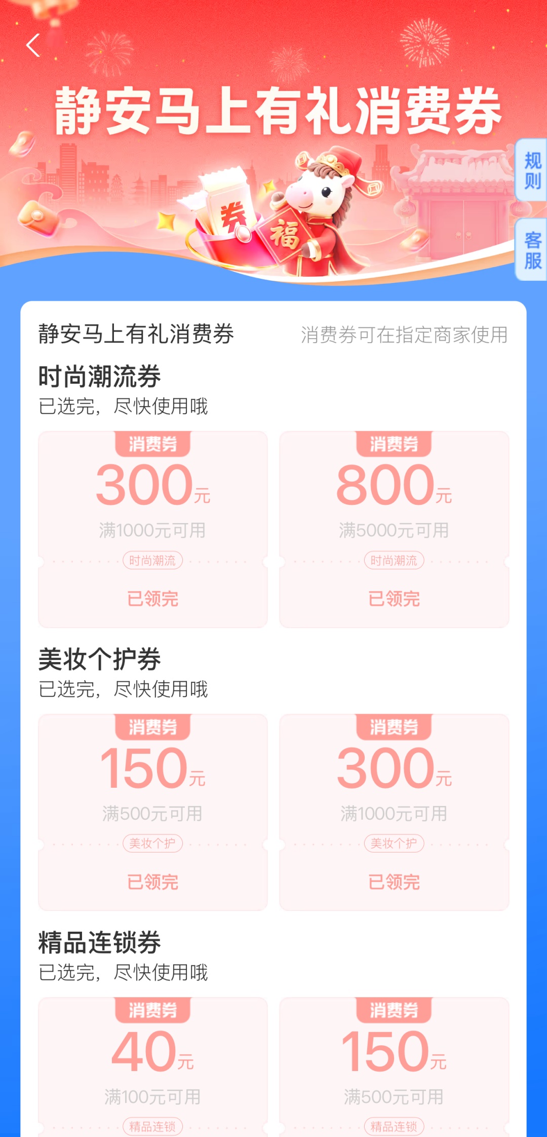 消费券仅支持上海静安区参与活动的商户使用。