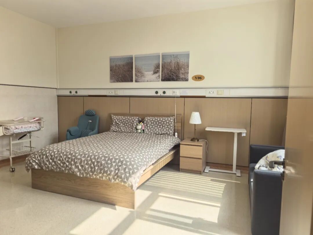 记者在现场看到,区别于普通病房,产后康复中心采用全新空间设计:宽敞明亮的卫生间可满足宝妈宝爸的日常使用需求;贴心配置的折叠沙发,便于家属或月嫂夜间陪护;针对哺乳场景定制的座椅,让喂养过程更舒适。每一处细节,都彰显着对新手妈妈的细致关怀。