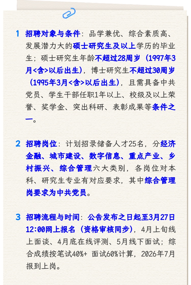 金山区新闻办介绍,金山区计划面向海内外高校招聘储备人才25名。报考者可在公告发布之日起至3月27日12:00期间扫描文末二维码进行报名。招聘公告如下~