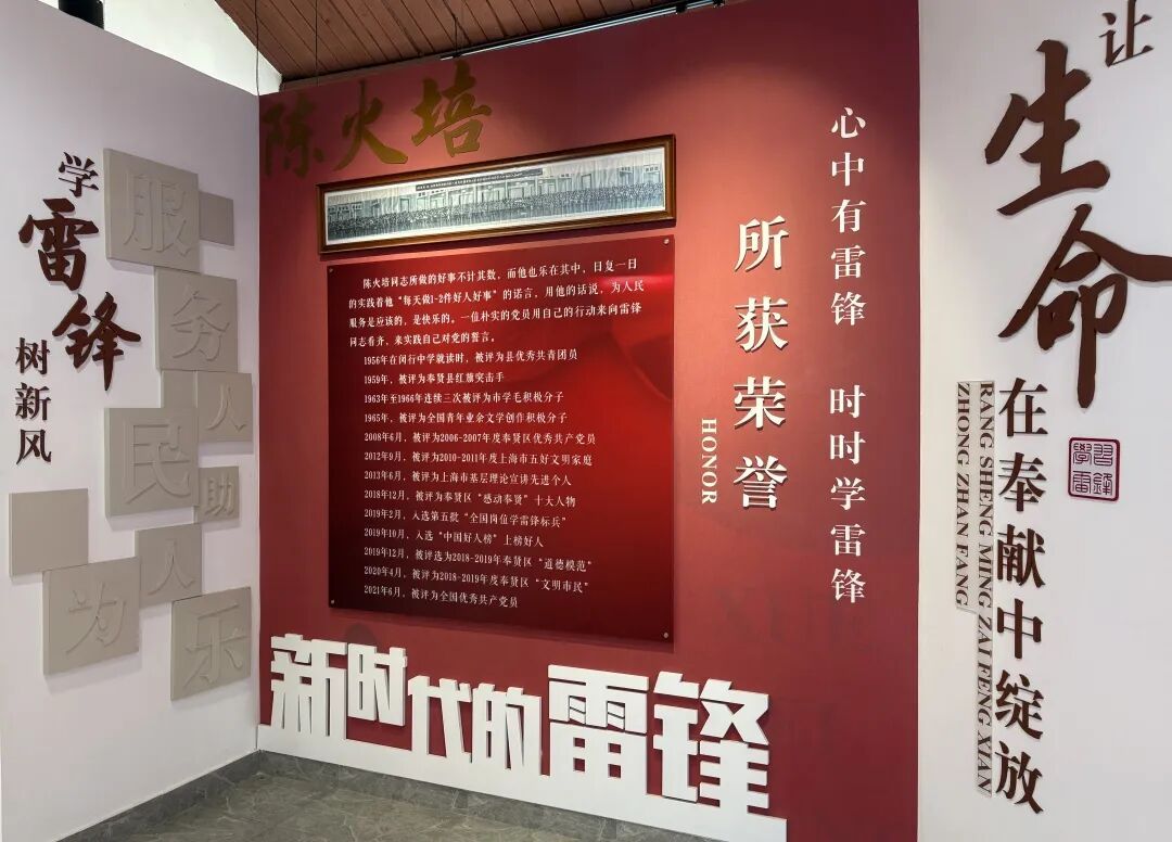 以“全国学雷锋岗位标兵”陈火培事迹为主线,结合荣誉墙、故事墙与证书展陈,展现这位“活雷锋”几十年如一日的奉献精神。从3000余场义务宣讲,到退休后坚持每天为村民做1-2件好事;从修补道路坑洼到助老帮困,陈火培用实际行动将雷锋精神渗透进乡村肌理,生动诠释了雷锋精神的时代价值与持久生命力。