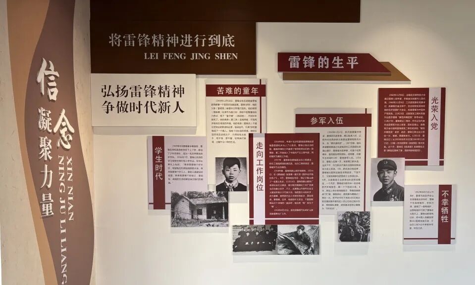 通过图文、实物与多媒体展示,回顾雷锋同志从苦难童年到英勇殉职的22年人生轨迹,钉钉子精神等经典故事在此鲜活呈现,配合雷锋照片、雷锋电影、雷锋主题歌曲和老物件等声影史料,让参观者沉浸式感受雷锋“做一颗永不生锈的螺丝钉”的坚定信念。