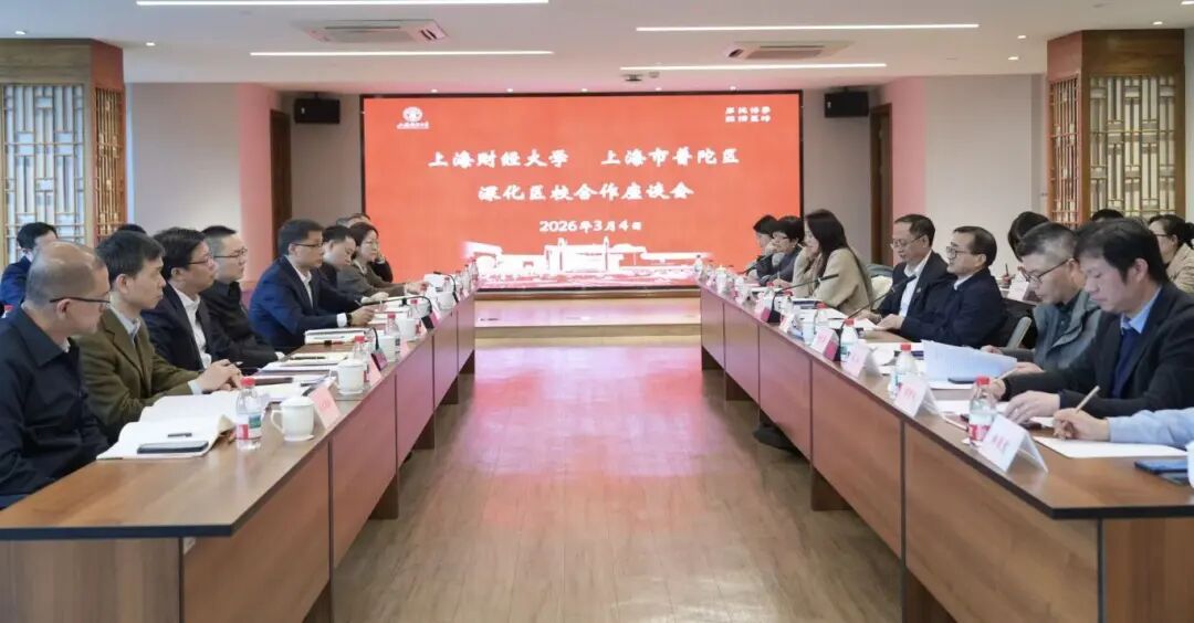 3月4日,普陀区与上海财经大学召开深化区校合作座谈会,双方就教育发展、产业创新、人才培养等领域深入探讨,推动区校合作进一步走深走实。上海财经大学党委书记许涛,校长、党委副书记刘元春;普陀区委书记胡广杰,区委副书记、区长赵亮,区委副书记赵勇出席。 许涛表示,上海财经大学将主动服务国家战略大局,以更高站位、更实举措推动区校合作精准发力、务求实效。希望双方进一步健全常态化对接机制,细化合作目标与实施路径,确保各项举措高效落地、闭环推进。学校将充分发挥学科优势与智库资源,精准对接区域发展实际需求,在产业升级、金融创新等重点领域提供高水平智力支持和专业化人才供给,助力区域构建现代化产业体系。期待双方以此次座谈为契机,推动区校合作迈上新台阶,共同书写高质量发展新篇章。 胡广杰指出,当前,普陀区正牢牢把握上海(长三角)国际科创中心扩围、上海国际贸易中心提质升级和虹桥国际中央商务区扩容三大机遇,主动服务沿沪宁产业创新带建设,加快构建大宗商品贸易供应链产业体系。希望双方进一步拓展合作的广度与深度,着力推动产业链上下游协同共建、生态共赢。积极探索更优人才培养模式,建立健全常态化对接机制,推动干部交流与人才双向赋能,促进教育链、人才链与产业链有机衔接,实现人才资源与区域发展需求精准匹配。 刘元春介绍了上海财经大学的办学特色与学科优势。他表示,学校将精准锚定普陀现代化产业体系建设需求,全面深化战略对接与资源联动。他期待 “十五五” 期间与普陀区在大宗贸易、科技金融、产教融合及新校区建设等方面深化合作。 赵亮介绍了普陀区经济社会发展情况及未来合作愿景。他表示,期待以上海财经大学优势学科为依托,聚焦大宗商品贸易等重点领域共建高端智库,更好赋能上海国际贸易中心建设;持续深化产教融合,完善协同育人机制,共同培养适配产业需求的高层次专业人才。 上海财经大学党委常委、副校长刘莉亚,党委常委、副校长靳玉英,党委常委、组织部部长杨乐;普陀区委常委、组织部部长李红珍,副区长周如意出席。 会前,区领导一行参观了上海财经大学校史馆。